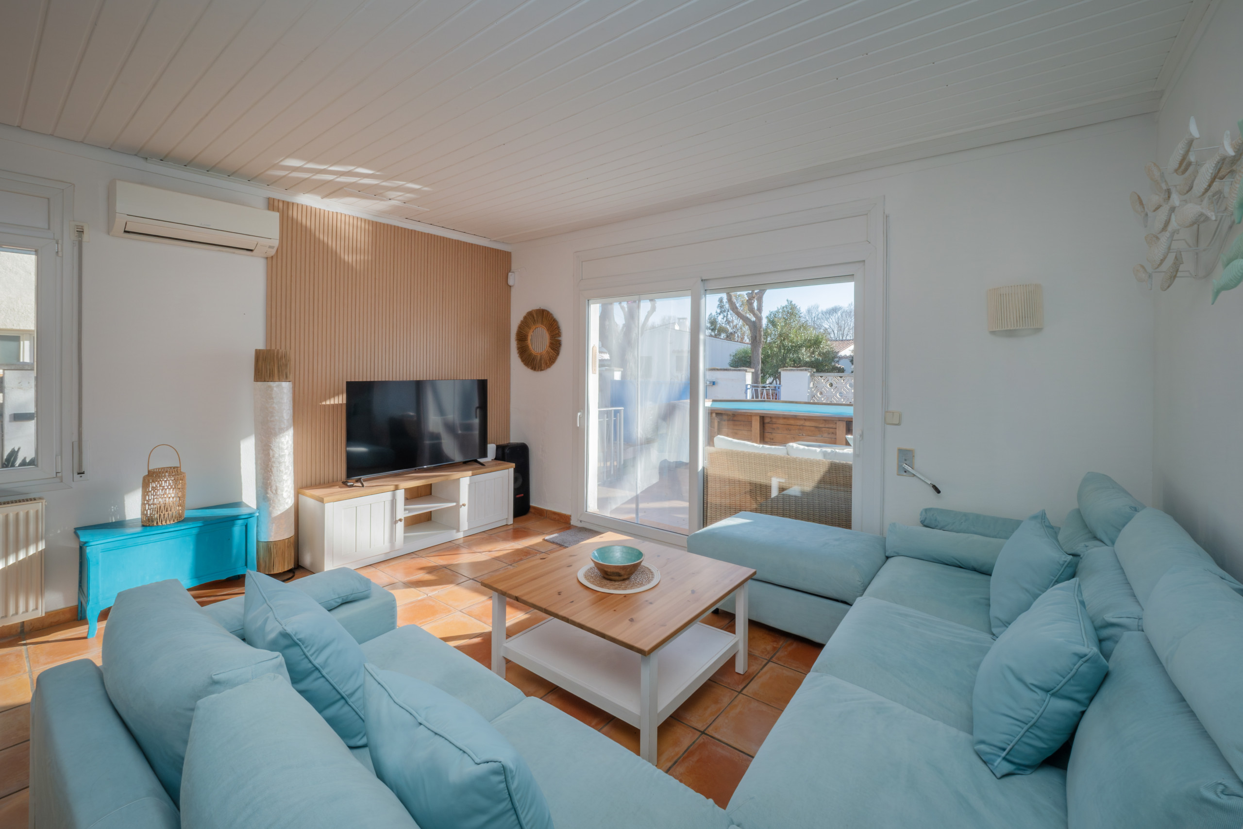 It features a garden, garden furniture, washing machine, barbecue, private swimming pool, Wi-Fi internet access, alarm system, heat pump heating, air conditioning in the living room and some bedrooms, private swimming pool, outdoor parking, and satellite TV (Spanish and French channels).